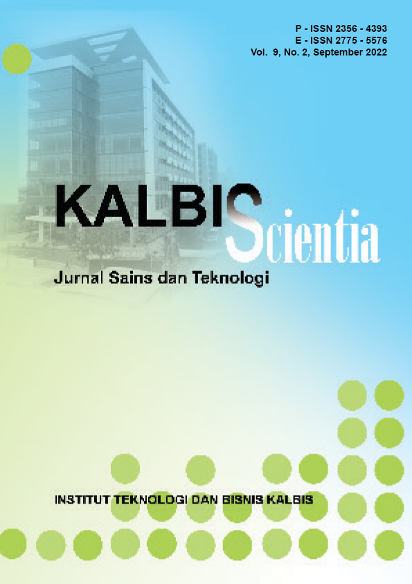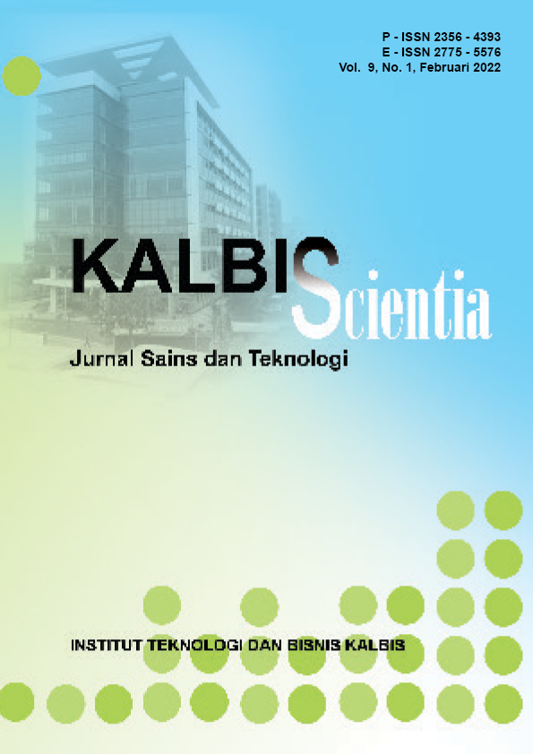 Vol. 9 No. 1 (2022)KALBISCIENTIA Jurnal Sains dan Teknologi adalah jurnal akses terbuka yang bertujuan untuk mempromosikan integrasi ilmu pengetahuan dan teknologi. KALBISCIENTIA Jurnal Sains dan Teknologi diterbitkan oleh Institut Teknologi dan Bisnis Kalbis. Fokus jurnal ini adalah untuk menerbitkan artikel dalam bidang penerapan sains dan teknologi. -