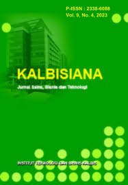 Vol. 9 No. 4 (2023)KALBISIANA Jurnal Sains, Bisnis dan Teknologi adalah jurnal akses terbuka akademik yang bertujuan untuk mempromosikan integrasi sains, bisnis dan teknologi. Fokusnya adalah menerbitkan makalah tentang sains, bisnis dan teknologi. Makalah yang dikirimkan akan ditinjau oleh komite teknis jurnal